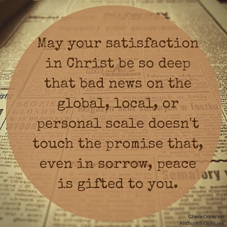 May your satisfaction in Christ be so deep that bad news on the global, local, or personal scale doesn’t touch the promise of peace gifted to you. When challenges come and triggers tempt toward anxiety, may your heart not be troubled, for you know you belong to the Prince of Peace who has overcome the world.
