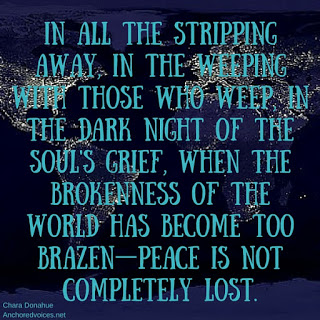 In all the stripping away, in the weeping with those who weep, in the dark night of the soul’s grief—when the brokenness of the world has become too brazen—peace is not completely lost.
