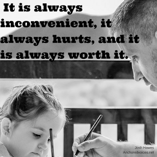 While incredibly cute on the surface, her statement magnified the pressing need for fathers. This child’s statement demonstrates how great the effects of being willing to step into someone’s life and fill a role, even for a short while can be. It is always inconvenient, it always hurts, and it is always worth it.