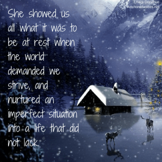 The memories she has given me offer riches greater than any reindeer-papered gift could ever give. I have them tucked away into the treasuries of my heart for the days when I need hope. I will always be grateful for the worn Bible that often laid open upon her bed, her constant presence, and the way she offered children who had experienced deep sorrow a place of peace.