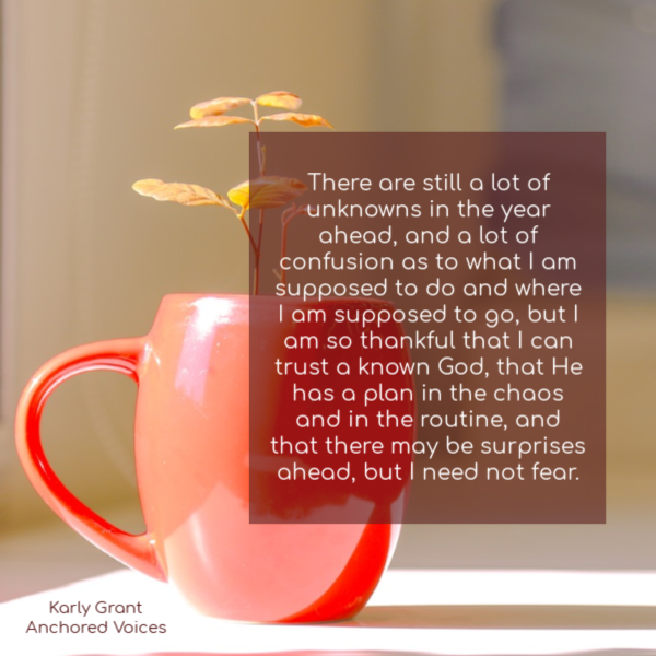 There are still a lot of unknowns in the year ahead, and a lot of confusion as to what I am supposed to do and where I am supposed to go, but I am so thankful that I can trust a known God, that He has a plan in the chaos and in the routine, and that there may be surprises ahead, but I need not fear. Here’s to 2019, routines, and a healthier outlook on life.