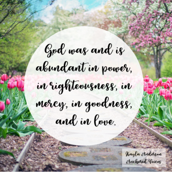 God was and is abundant in power, in righteousness, in mercy, in goodness, and in love. In Him, we have the power to give and live abundantly as well – yes, even when our life doesn’t look or feel rich. We all have access to a wealth in Him to give to others.