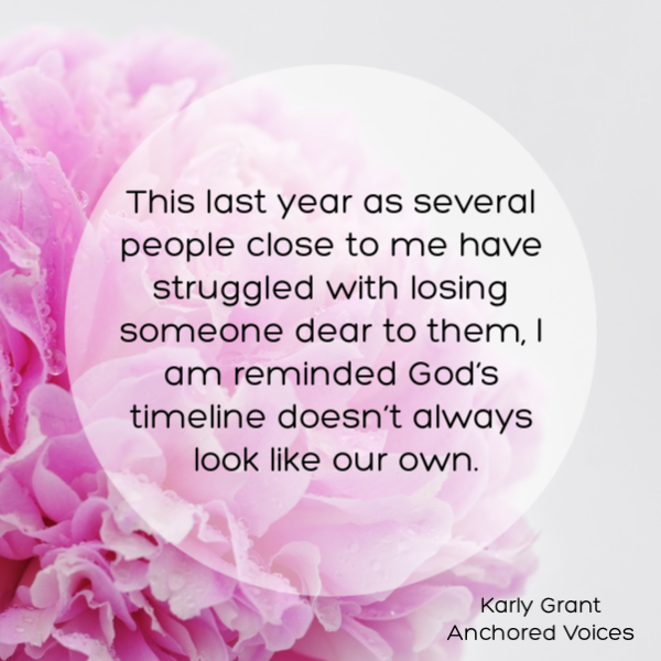 I’ve been thinking about death a lot lately. Yes, cheery I know, but stick with me. These thoughts haven’t been directed much toward my own death, but rather lives that from an earthly perspective have been taken too soon. This last year as several people close to me have struggled with losing someone dear to them, I am reminded God’s timeline doesn’t always look like our own.
