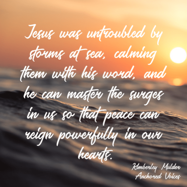 Jesus was untroubled by storms at sea, calming them with his word, and he can master the surges in us so that peace can reign powerfully in our hearts. This doesn’t mean he will make us void of deep feeling, or keep us free of conflict, but that he will navigate us through the truth of the feeling to its root and source—whether it be a heaven-born desire for justice, a deep wounding that needs his healing, or a strange concoction of unmet need tinctured with manipulative striving and holy hope.