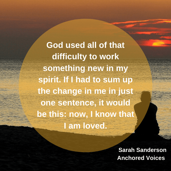 God used all of that difficulty to work something new in my spirit. If I had to sum up the change in me in just one sentence, it would be this: now, I know that I am loved.