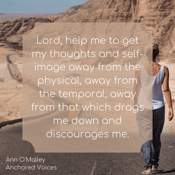 Lord, help me to get my thoughts and self-image away from the physical, away from the temporal, away from that which drags me down and discourages me. Help me to fix my eyes “not on what is seen, but on what is unseen” (2 Corinthians 4:18, NIV). Help me to place my identity on the firm foundation of Christ, not on the shifting uncertainty of my aging appearance