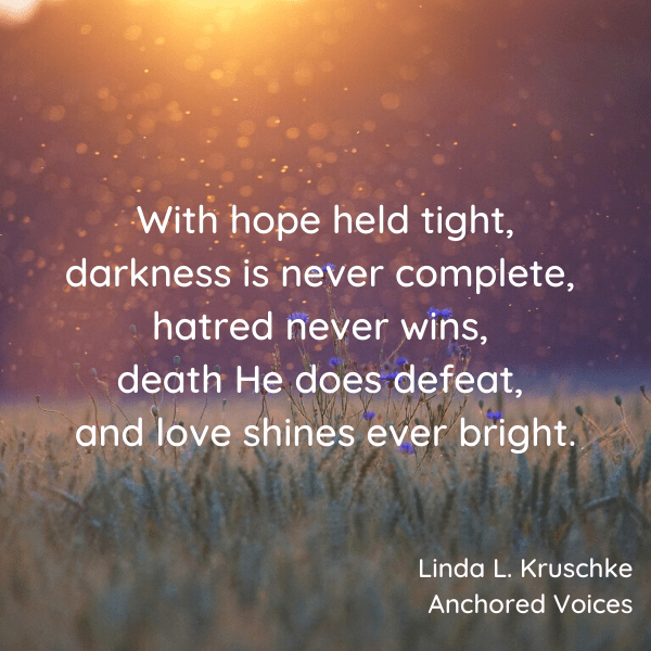 Linda L. Kruschke is the author of My Name Is Beloved, winner of the Unpublished Memoir category of the Oregon Christian Writers Cascade Writing Contest, as well as a self-published author of two poetry books. She is a wife, mother, active member of her church, former Bible Study Fellowship leader, and recovering lawyer. She works as the Director of Legal Publications for the Oregon State Bar. But her real passion is sharing God’s healing grace with others, especially those haunted by sexual trauma and abortion. She struggled with major clinical depression for many years, but through the power of forgiveness has become a fearless follower of Christ, living in the assurance of her salvation and God’s love. She blogs at Another Fearless Year and Broken Believers.