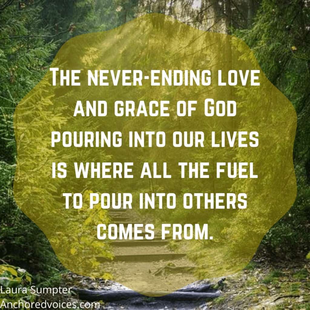 The never-ending love and grace of God pouring into our lives is where all the fuel to pour into others comes from. We can fall back into his arms, take a step of faith into the unknown, and share this trust, knowing it is our story to share with a broken world in need of hope.