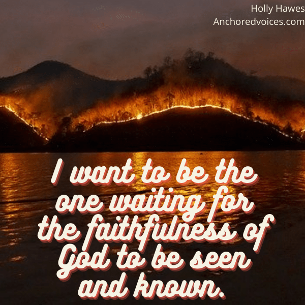 I don’t know Bruce, though I know members of his family. But he sounds like someone who has spent time learning the word and the ways of Jesus. Studying the character of the creator God, and tracing out his goodness in every situation. Yes, even this situation. I want to be like that. I want to be the one waiting for the faithfulness of God to be seen and known. The one that knows the darkness will disperse and the light will come.